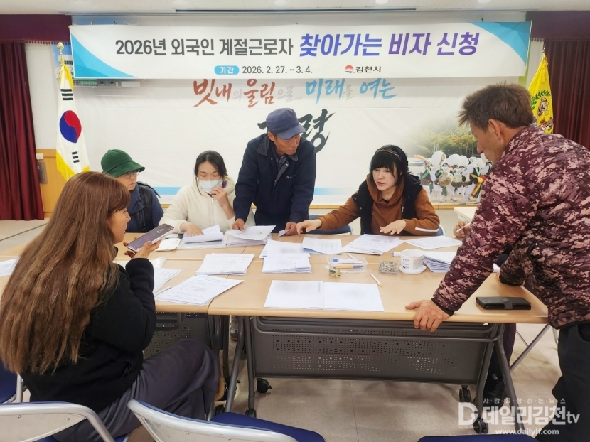 김천시는 외국인 계절근로자 비자 신청에 어려움을 겪고 있는 농가의 부담을 해소하기 위해 ‘농가로 찾아가는 계절근로자 비자 신청’ 현장 접수 서비스를 본격 운영한다고 밝혔다.