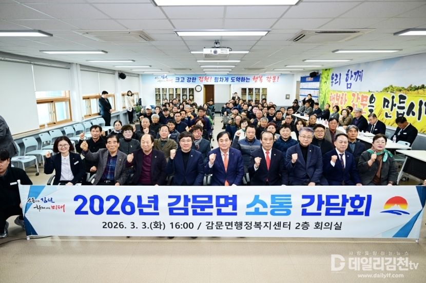 김천시 감문면(면장 최은희)은 지난 3일 감문면 행정복지센터에서 주민 100여 명과 함께하는 ‘2026년 감문면 소통 간담회’를 개최해 지역 주민들과 소통·공감하는 시간을 가졌다.