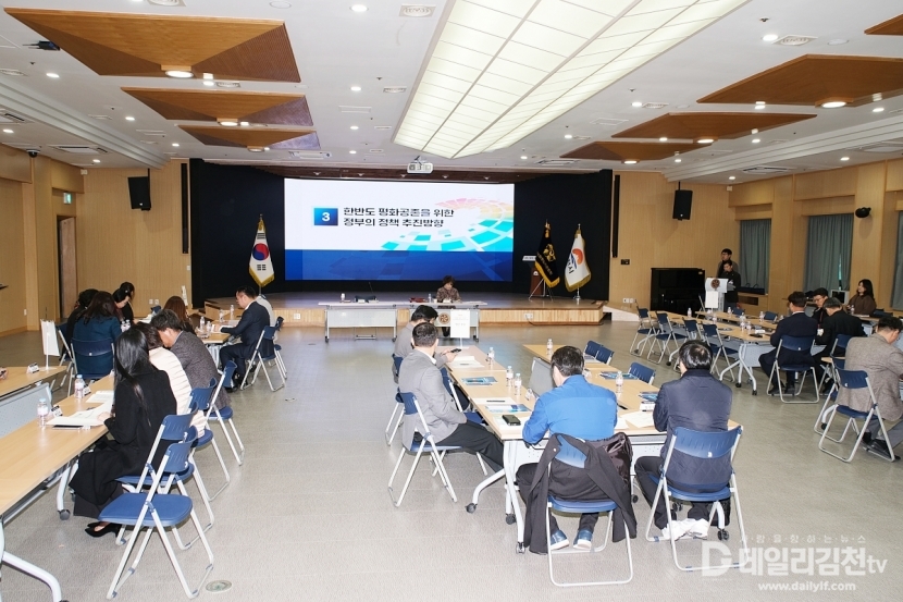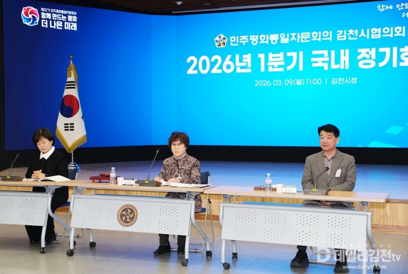 민주평화통일자문회의 김천시협의회(협의회장 유윤자)는 9일 오전 11시 김천시청 대강당에서 자문위원 40여 명이 참석한 가운데 ‘한반도 평화공존을 위한 대내외 정책 추진방향’을 주제로 2026년 1분기 정기회의를 개최했다.
