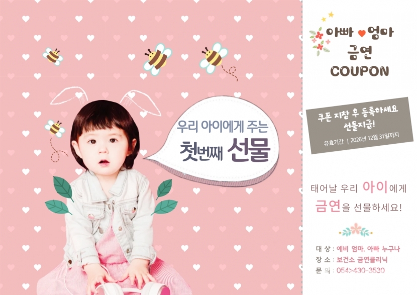 김천시보건소 건강증진과장은 “보건소를 방문하는 임산부와 가임기 부부가 등록권을 통해 태아 건강의 중요성을 다시 한번 인식하는 계기가 되기를 바란다”라며, “태어날 아이에게 금연을 선물한다는 마음으로 보건소 금연클리닉을 적극적으로 활용해 주시길 바란다”라고 말했다.