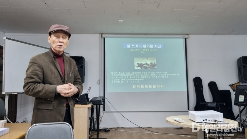 지난 3월 9일 한국문인협회 김천지부 세미나실에서 민경탁 시인이 진행하는 ‘평생교육 글쓰기 무료 강좌’가 개강했다. 이번 강좌는 글쓰기에 관심 있는 시민과 예비 문인들을 대상으로 마련됐다.
