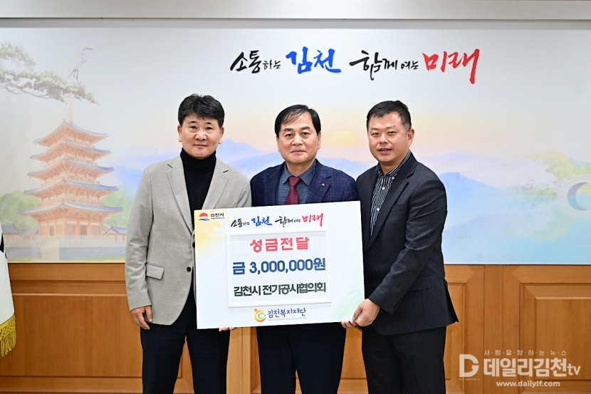 시 관계자는 "지역사회 복지를 위해 따뜻한 나눔을 실천해 주신 김천시전기공사협의회에 감사드린다. 기탁해 주신 성금은 도움이 필요한 이웃을 위해 소중히 사용하겠다"라고 말했다.