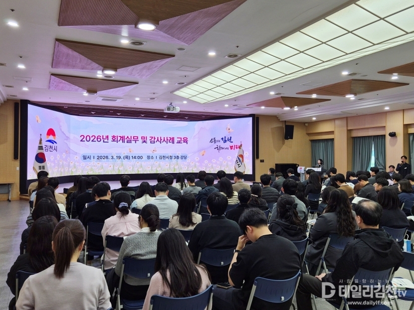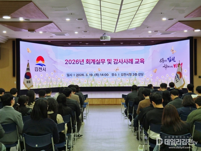 김천시는 지난 19일 시청 3층 강당에서 실과소, 읍면동 회계관계 공무원 및 8·9급 직원 200여 명을 대상으로 ‘2026년 회계실무 및 감사사례 교육’을 실시했다.