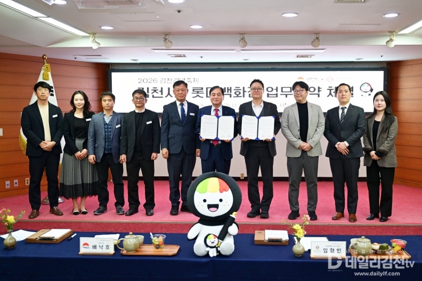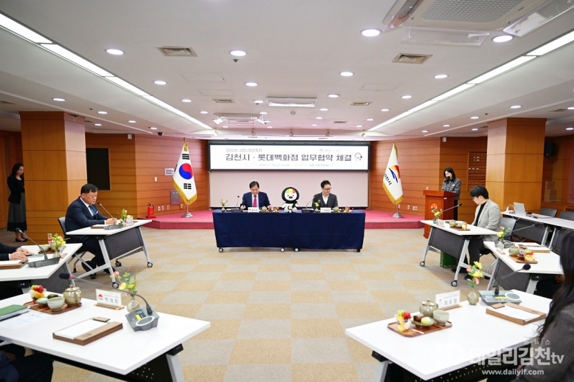이날 협약식에는 배낙호 김천시장과 임형빈 롯데백화점 F&B 부문장 등 양 기관 관계자 10여 명이 참석한 가운데 협약서 양측 대표의 인사말을 시작으로 서명 및 교환, 기념촬영 순으로 진행됐다.