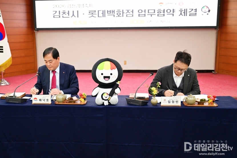 김천시는 20일 김천시청에서 롯데백화점과 김천김밥축제의 성공적인 개최 및 브랜드 가치 확산을 위한 업무협약(MOU)을 체결했다.