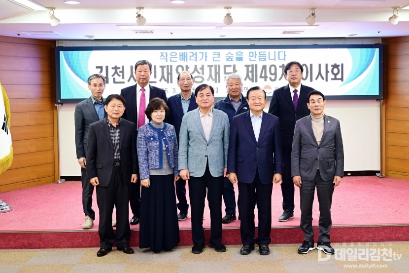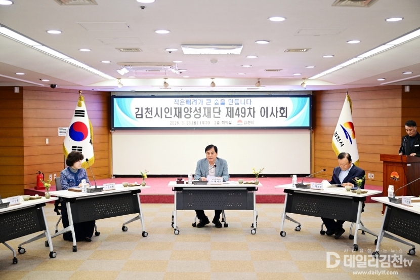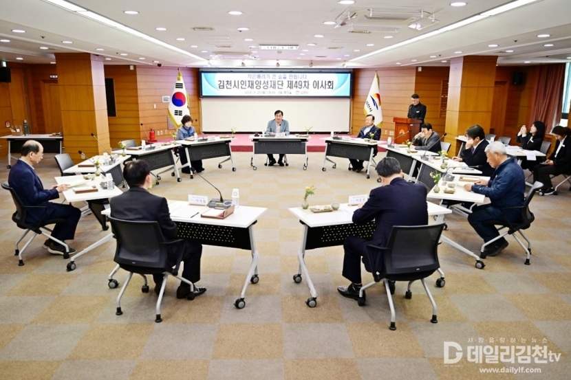 김천시인재양성재단(이사장 배낙호)은 지난 23일 김천시청 2층 회의실에서 제49차 이사회를 갖고 2025년도 재단 운영성과 점검과 함께 주요 안건을 심의·의결했다.