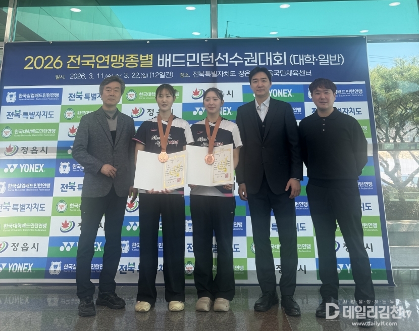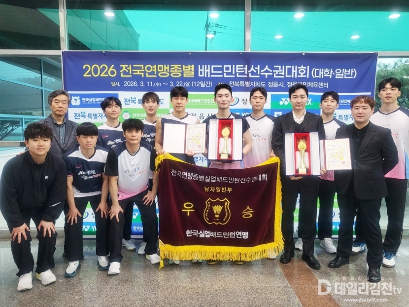 김천시청 배드민턴단이 지난 14일부터 22일까지 9일간 정읍국민체육센터에서 열린 「2026 전국연맹종별 배드민턴선수권대회」에서 금메달 2개, 동메달 2개를 획득하며 대한민국 스포츠 중심도시 김천의 위상을 다시 한번 전국에 알렸다.