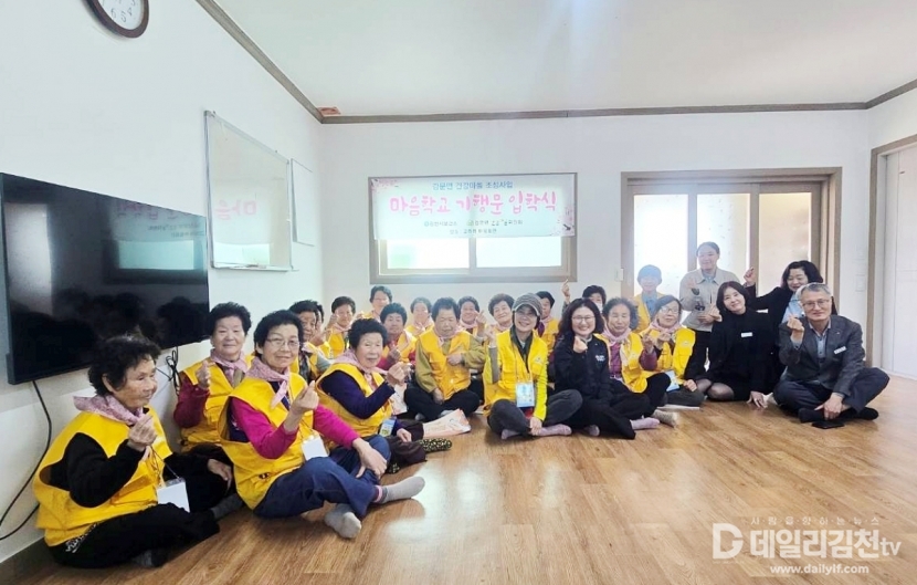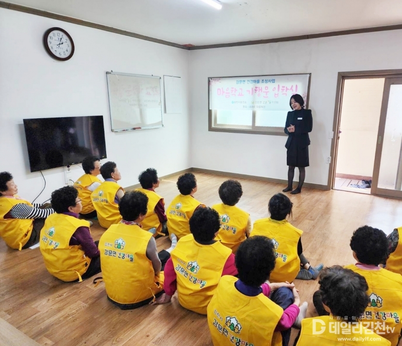 김천시는 지난 24일 감문면 금라리 마을회관에서 건강마을 주민들을 대상으로 한 ‘건강마을 마음 학교 기억, 행복, 문열기’(이하 마음학교 기행문) 입학식을 개최했다.