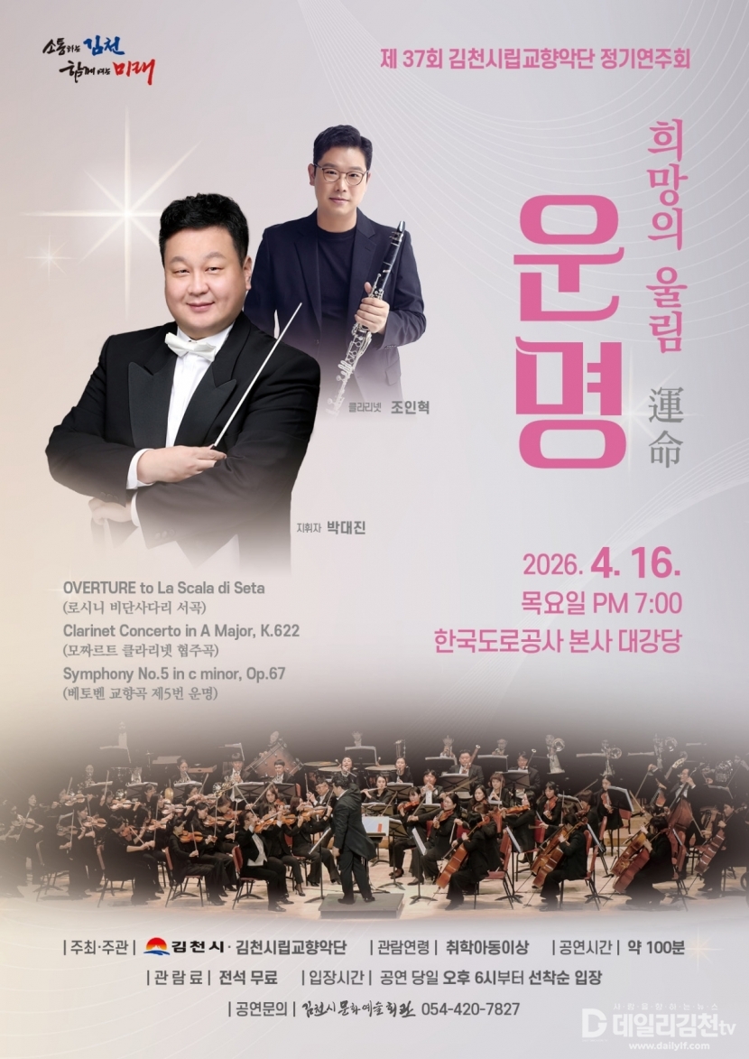 김천시 문화예술회관은 오는 16일 오후 7시 한국도로공사 본사 대강당에서 시립교향악단 제37회 정기연주회를 개최한다.