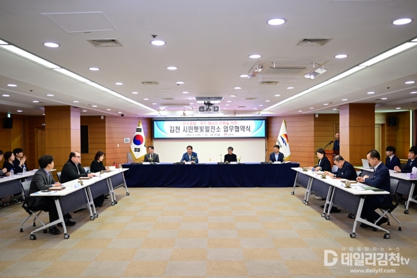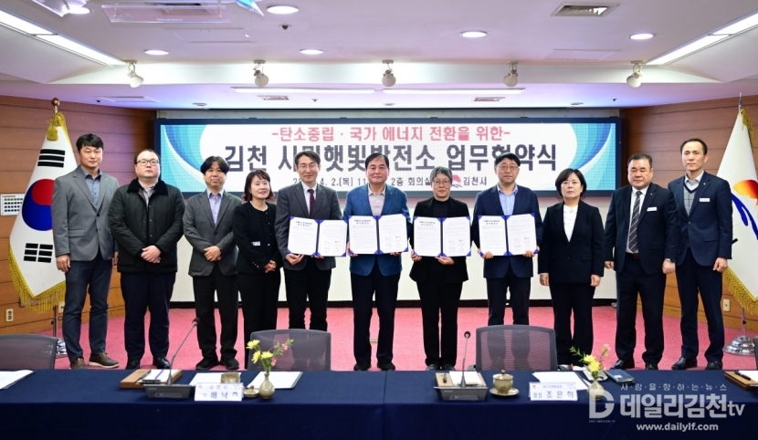 김천시는 지난 2일 대구지방환경청, 경상북도탄소중립지원센터, (사)누구나햇빛발전과 함께 ‘경북 1호 김천 시민햇빛발전소’건립을 위한 업무협약을 체결했다. 이번 협약은 공공 유휴부지를 활용해 시민이 참여하는 재생에너지 모델을 구축하기 위해 추진됐다.