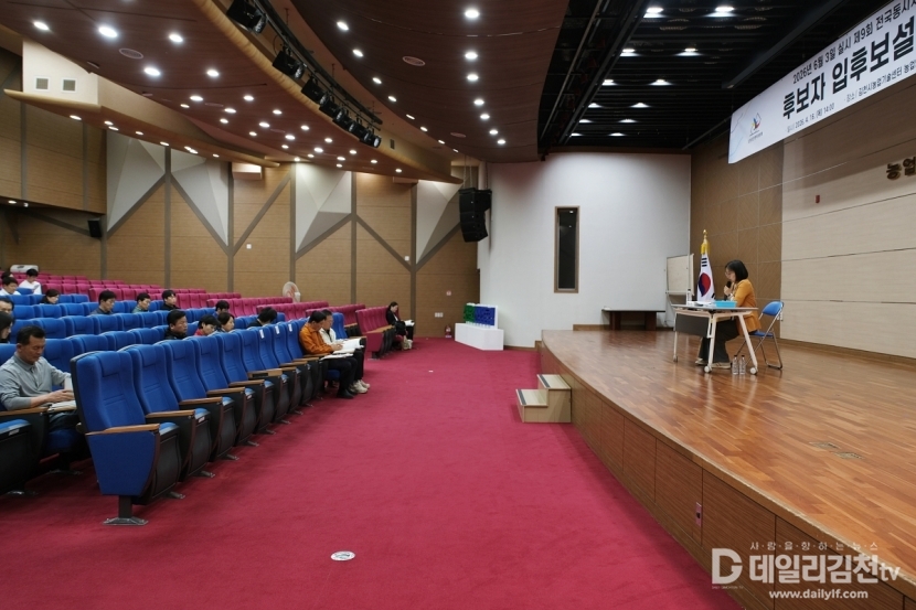 김천시선거관리위원회(위원장 김선영)는 제9회 전국동시지방선거를 앞두고 입후보예정자와 선거사무관계자를 대상으로 한 입후보설명회를 16일 오후 2시 김천시농업기술센터 농업인교육관에서 개최했다.