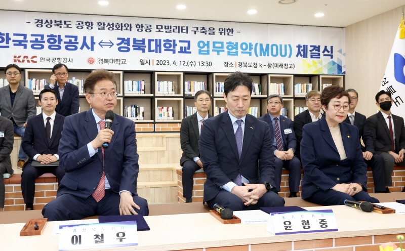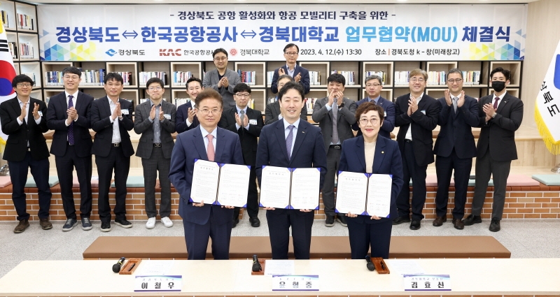 경북도는 12일 도청에서 한국공항공사, 경북대학교와 함께 도내 공항 활성화와 신공항 건설·운영 협력 강화, 경북형 도심항공교통(G-UAM) 기반조성 인프라 구축을 위한 업무협약을 체결했다고 밝혔다.