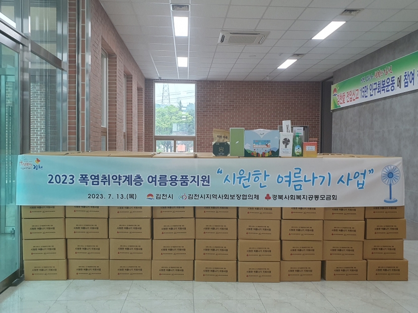 시원한 여름나기 물품 지원 사업은 김천시 지역사회보장협의체와 경북사회복지공동모금회가 함께 공동 기획한 사업으로 2017년부터 시작해 7년째 이어져 오고 있다.