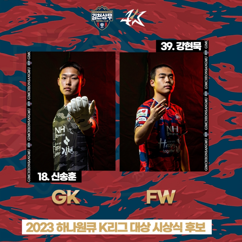 한국프로축구연맹이 28일 ‘2023 하나원큐 K리그 대상 시상식’ 개인상 후보선정위원회 결과를 발표했다. K리그2 우승팀 김천상무에서는 10명이 이름을 올렸다.