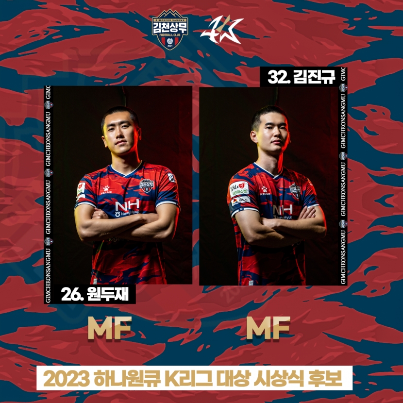 MVP 원두재, 영플레이어상 김민준을 비롯해 감독상에는 정정용 감독이 노미네이트됐다. BEST11에도 GK 신송훈, DF 박민규-김재우-이상민, MF 김진규-원두재, FW 강현묵이 이름을 올렸다. 김천은 개인상과 베스트11 GK, MF, FW 부문에서 모두 이름을 올리며 K리그2 우승팀 면모를 뽐냈다.