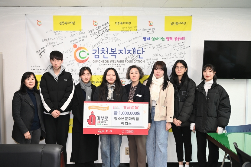 김천시 청소년문화의집 자율 동아리 에디스는 지난 23일 경북공동모금회에 성금 100만 원을 전달했다.