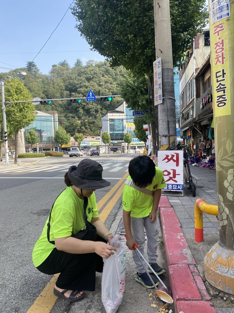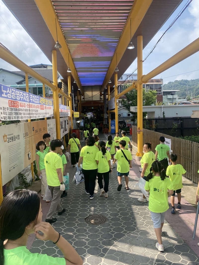 지구를 지키는 숲가족 파워 숲꾸러기와 T.G.P_티나는 지구사랑 프로젝트 꿈틀이 함께한 이번 봉사는 추석 명절 장보기로 많은 시민이 찾을 전통시장에서 진행됐다. 봉사단은 오전 일찍 모여 조를 나눠 황금시장과 중앙시장 각 골목골목을 돌며 쓰레기줍깅 활동을 했다.